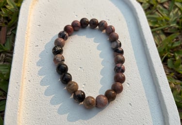 Rhodonite healing crystal bracelet—a powerful stone of love, emotional healing, and self-discovery